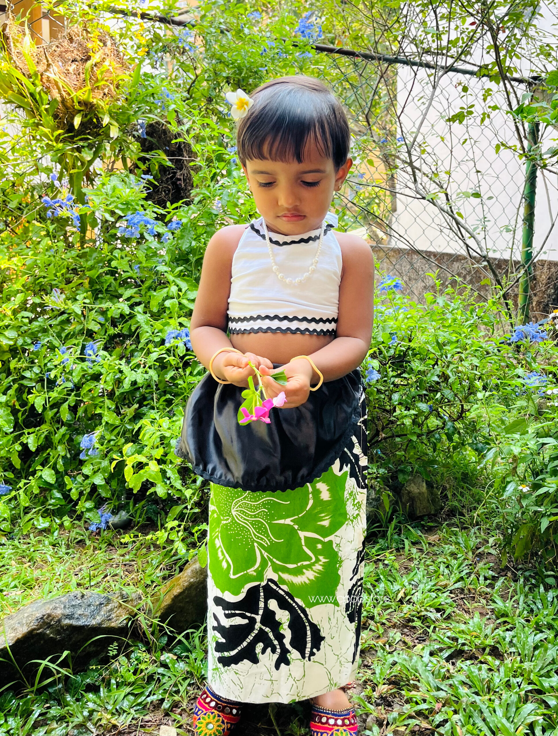 Aurudu Green Bloom Little Girls Sarong with Top