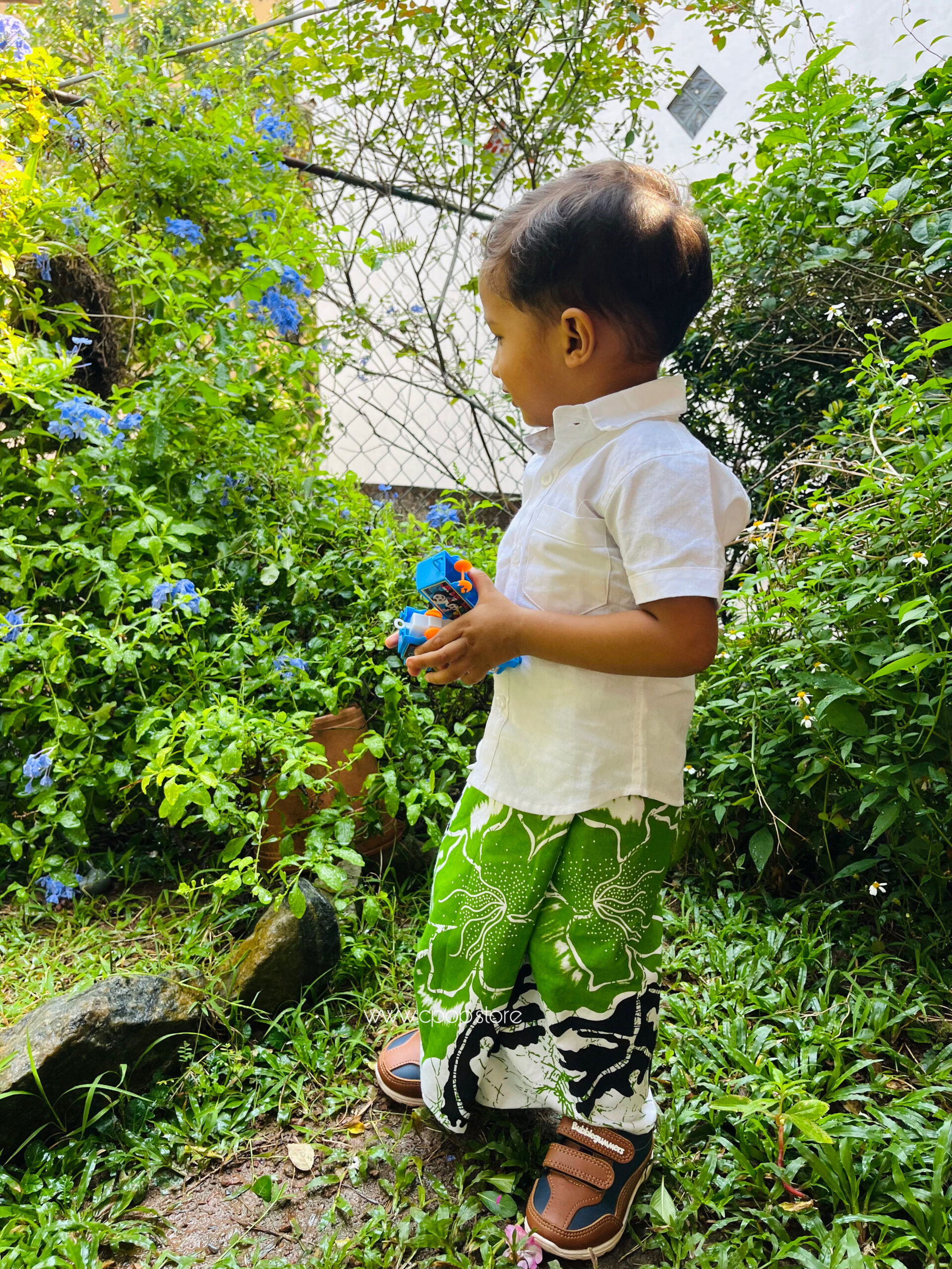Aurudu Green Blossom Little Boy Sarong with Shirt