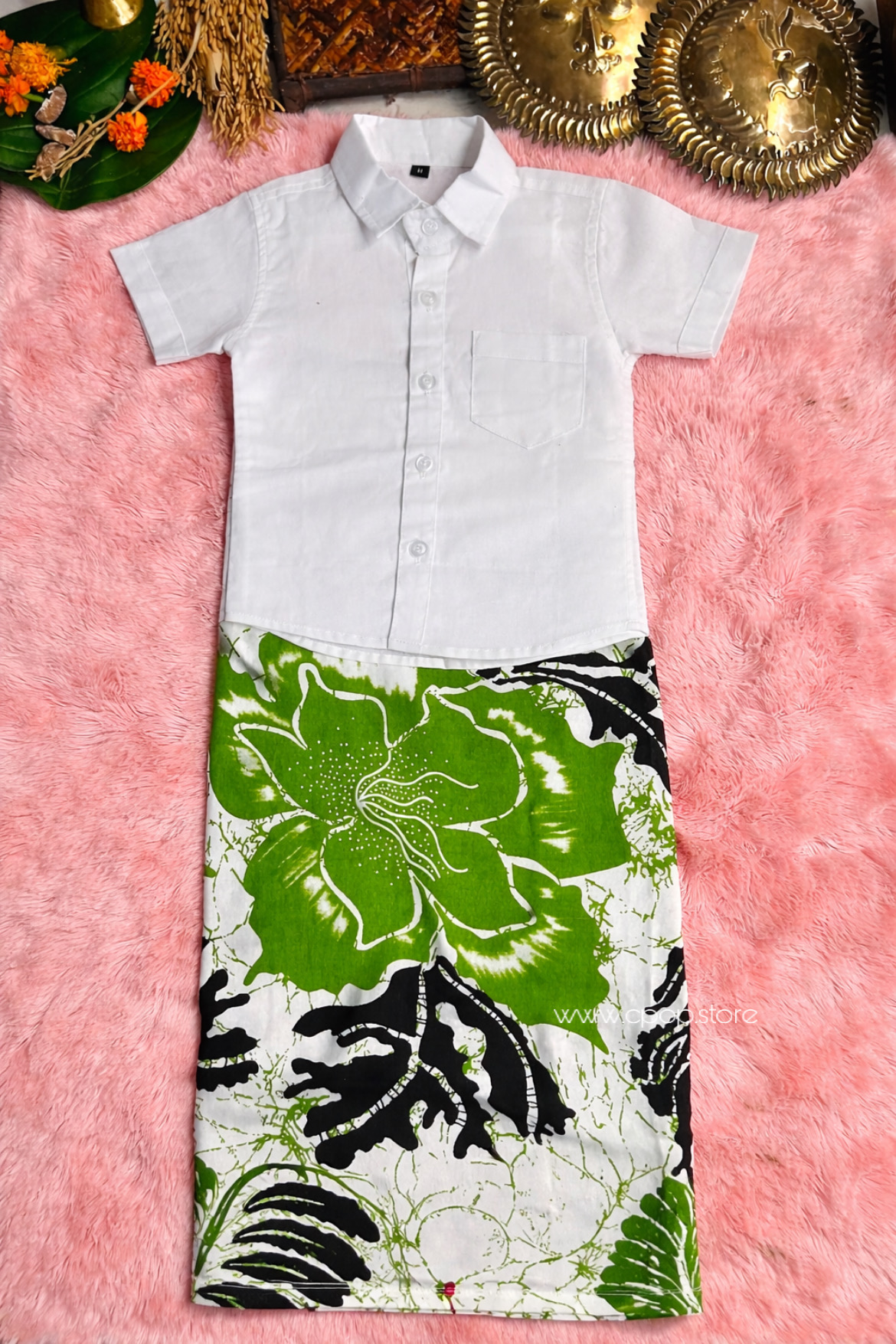 Be the first to review “Aurudu Green Blossom Little Boy Sarong with Shirt”