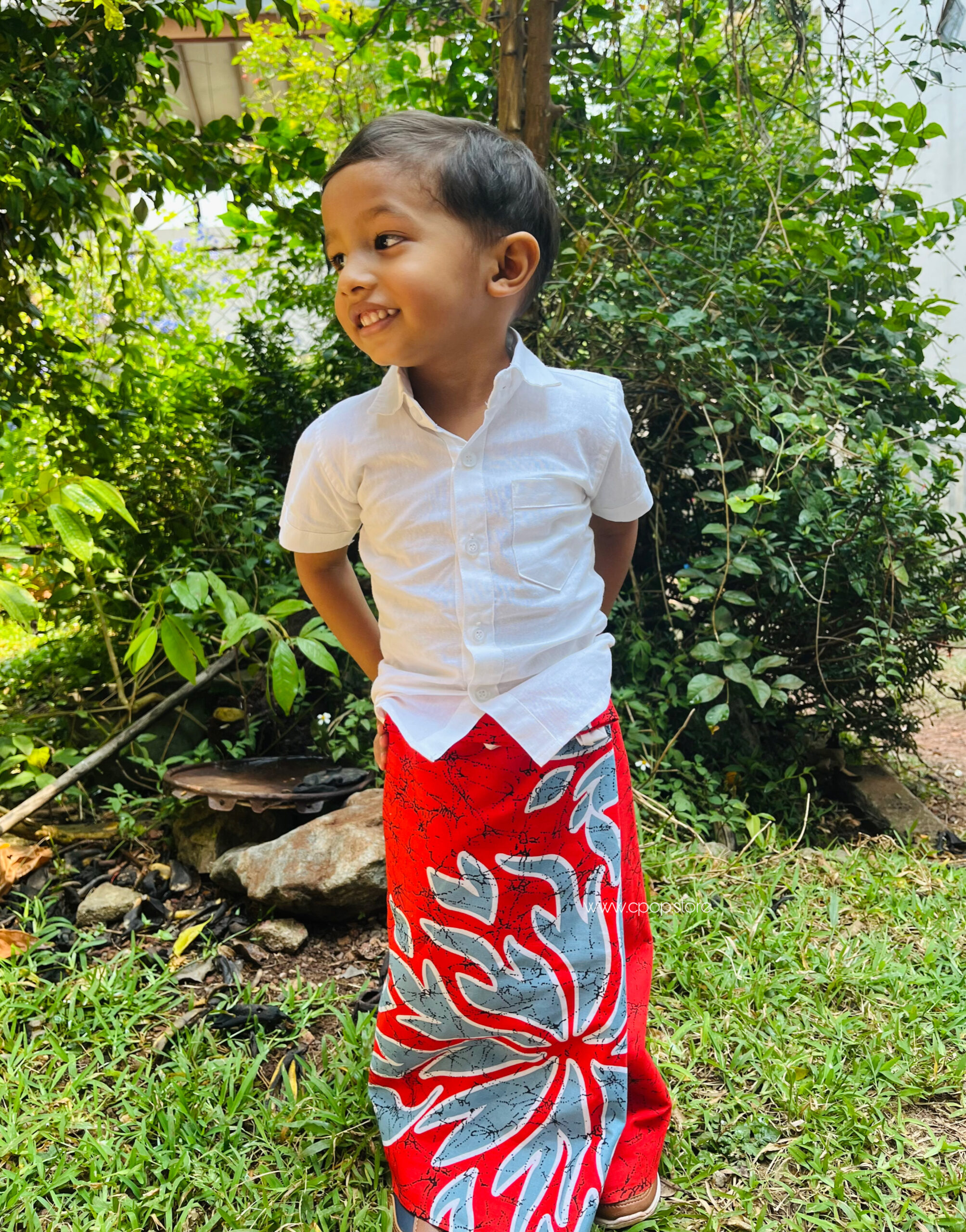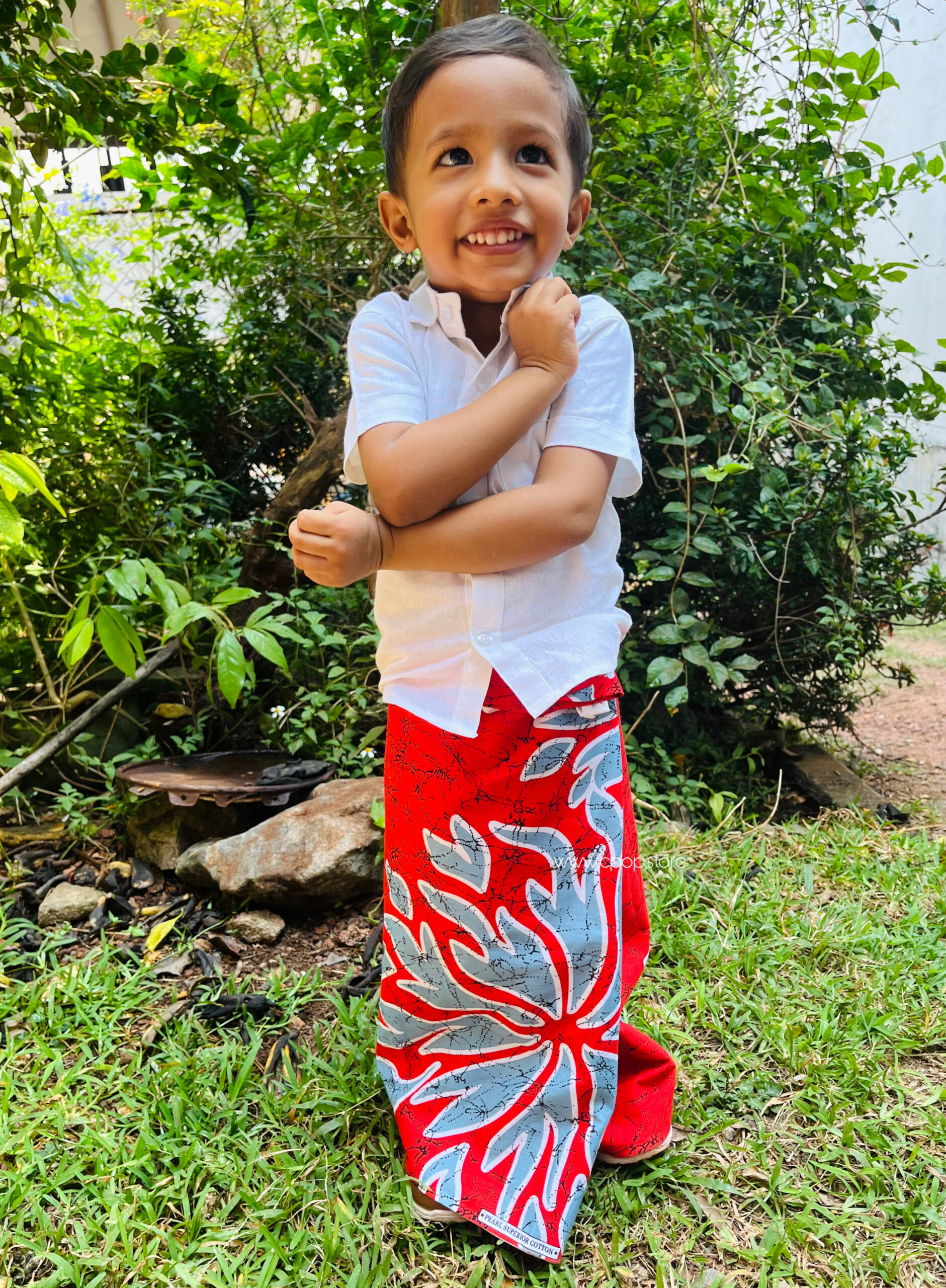 Home » Sarong » Aurudu Red Blossom Little Boy Sarong with Shirt
